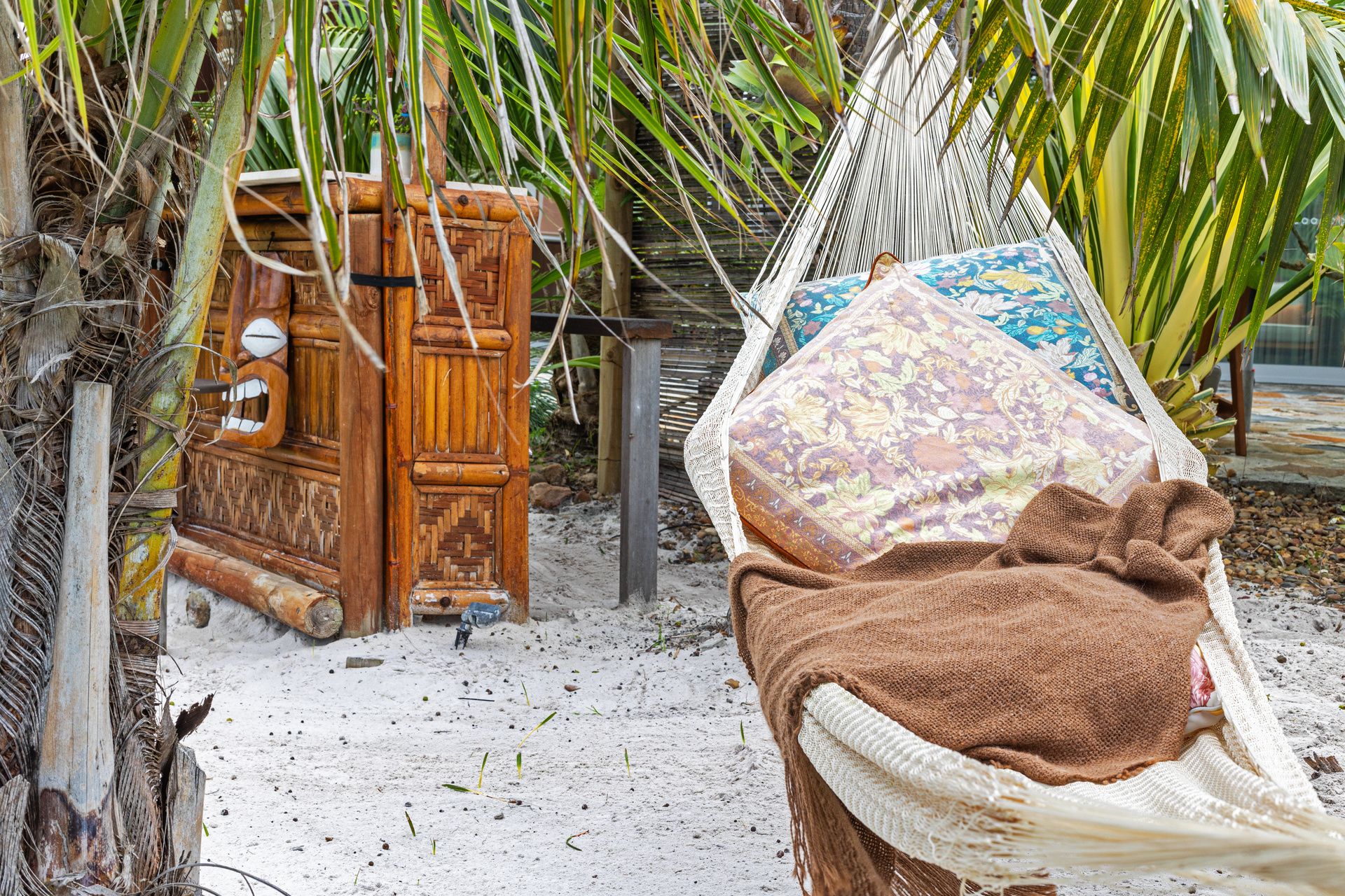 Outdoor Entertainment: Unwind at the Tiki style cocktail bar, relax in the hammock, or gather around the bonfire for a cozy evening.