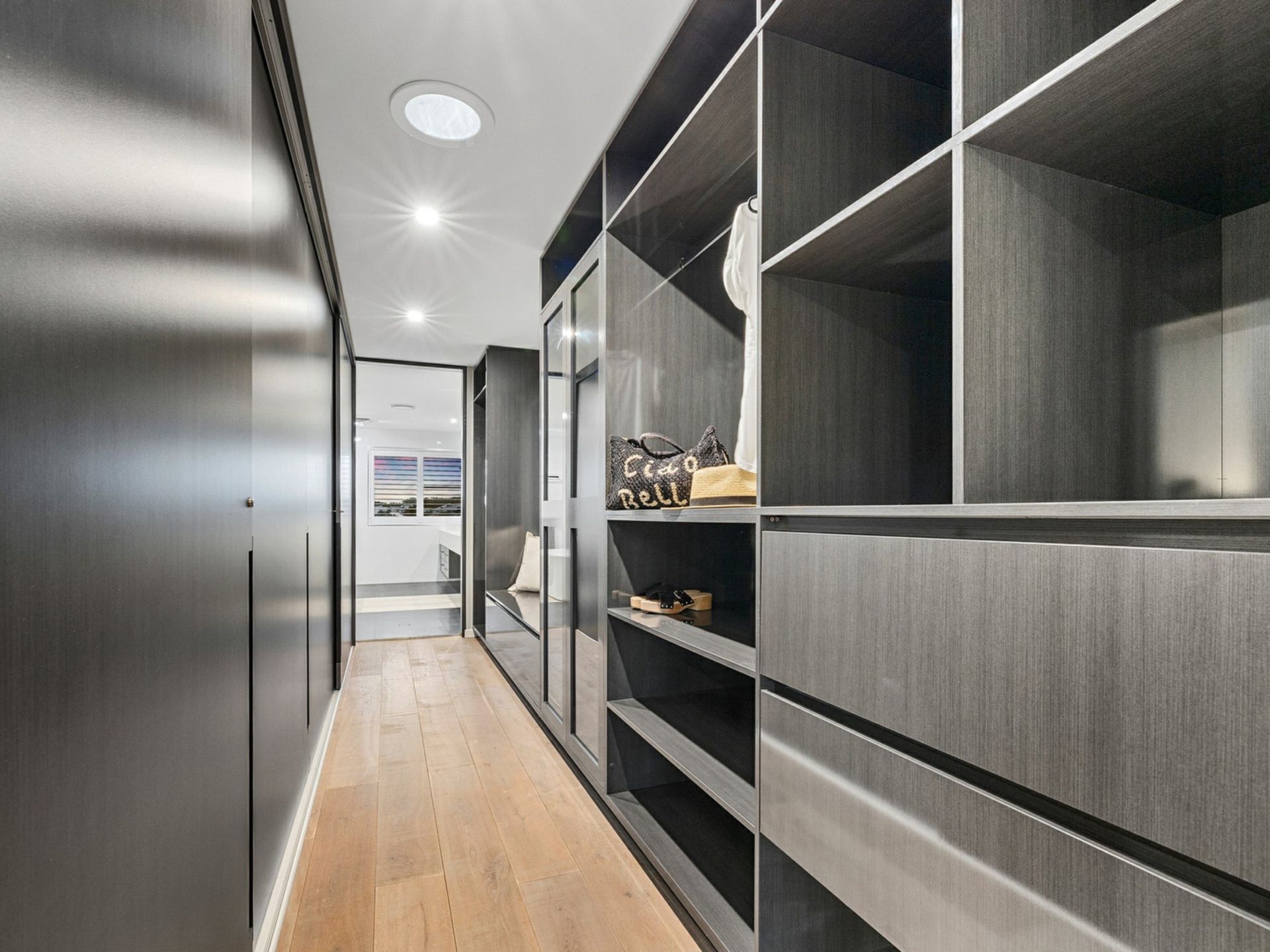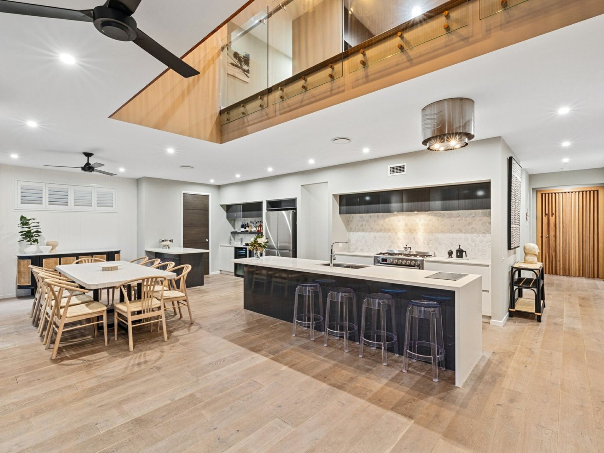 Gourmet kitchen features high‑end finishes: 900 mm gas cooktop, induction cooking zone, a sleek Caesarstone island, custom cabinetry, and a butler’s pantry for added convenience.