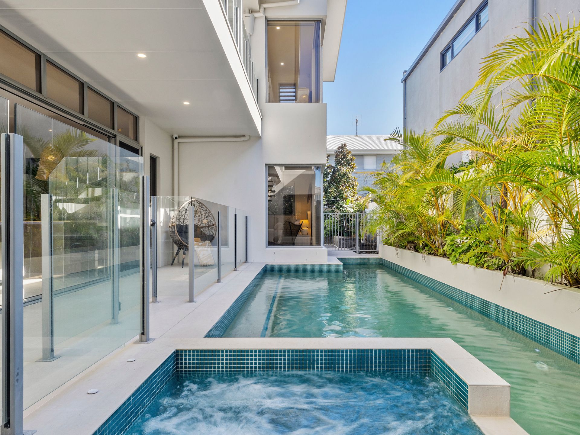 Spread across multiple light-filled levels, the open-plan kitchen, dining, and living spaces flow seamlessly to the outdoors, where an 11-metre saltwater lap pool, heated spa, and sun-soaked terraces create your own private resort. Enjoy alfresco meals, sunset drinks on the rooftop terrace, or quiet mornings with ocean breezes drifting through the home.