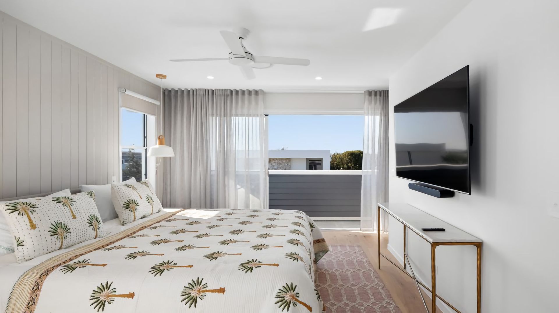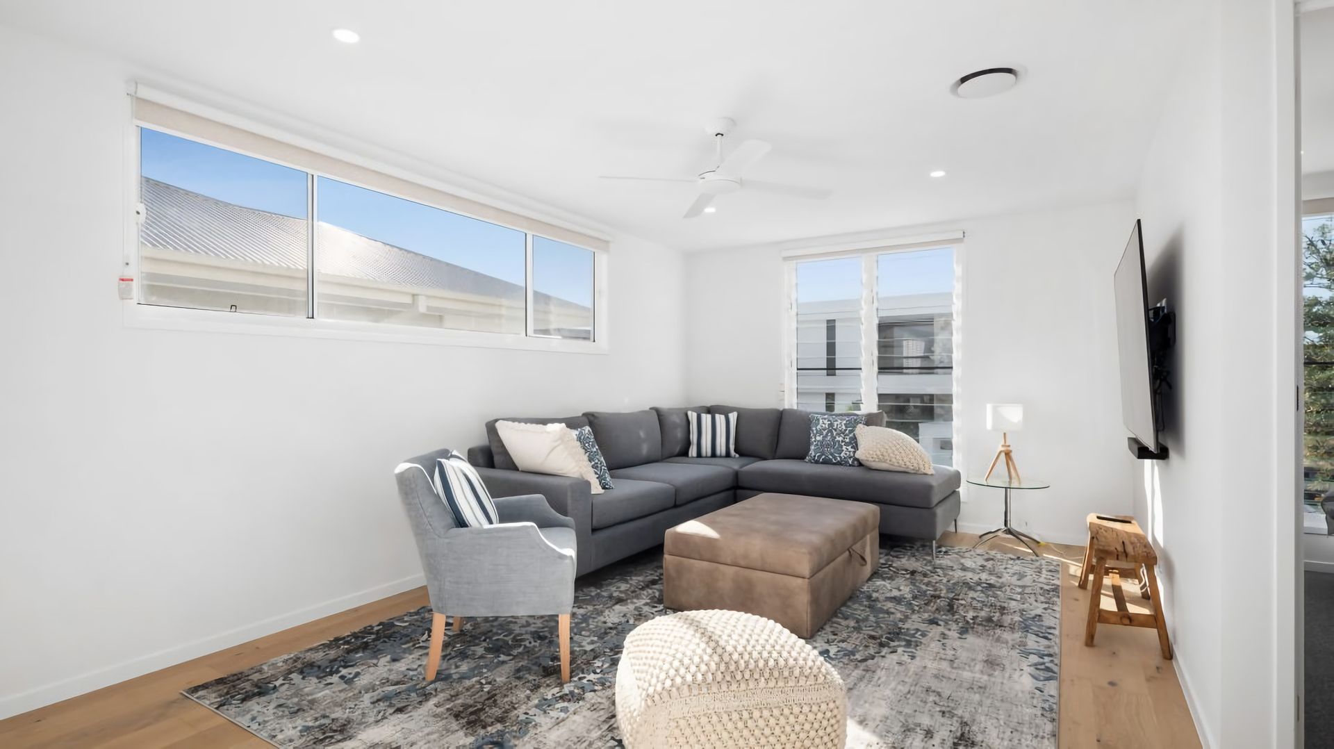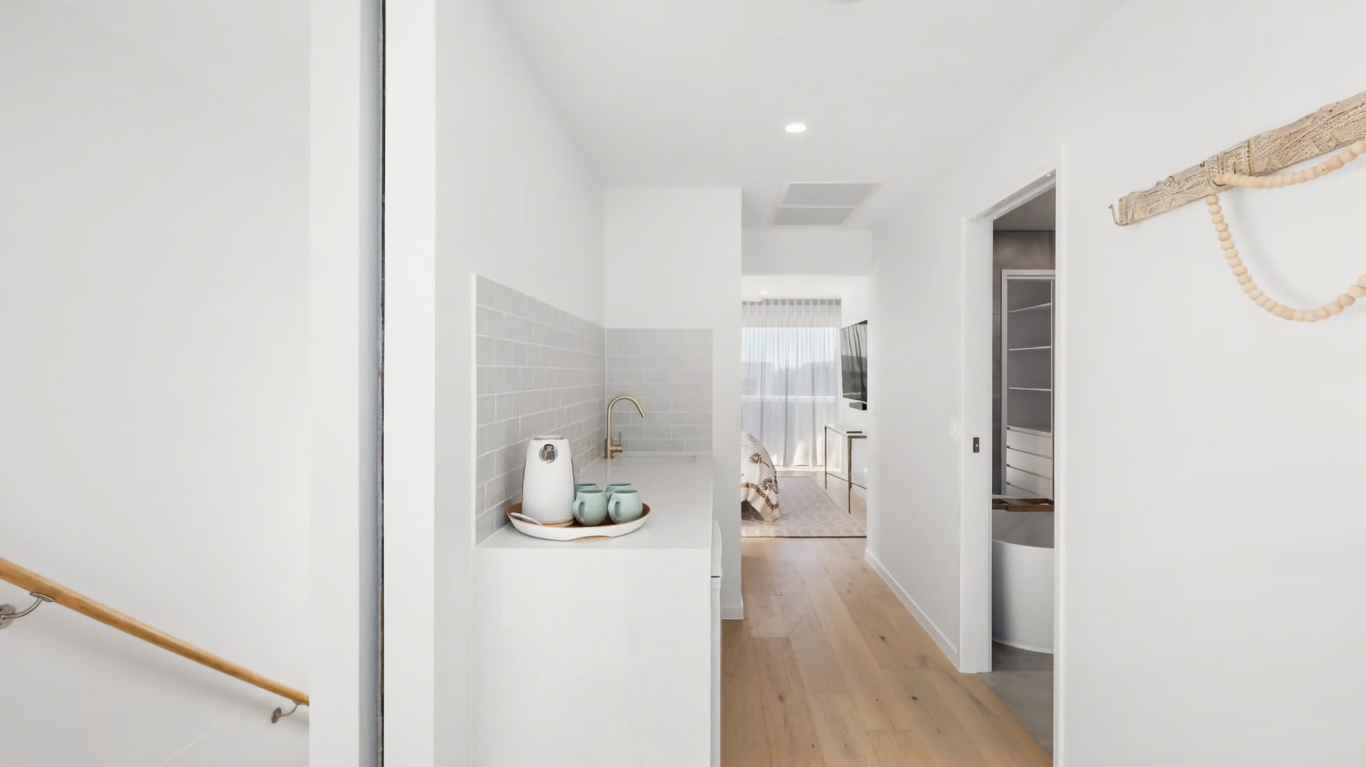 Level 3 - Another living zone awaits on this thoughtfully designed top floor. Also referred to as the “parents’ retreat”. The multipurpose room has a designated desk and work space while the sofa folds out into a queen bed (This queen fold-out sofa can allow the property to sleep 14 guests on request). The kitchenette (with fridge) also offers the ability to have a relaxing coffee or tea without needing to head down to the ground floor. Indulge in the sophistication of the master suite with a generous balcony (with some ocean glimpses), stylish walk-in robe and an ensuite with a divine freestanding bath, separate shower and double basin. The master bedroom also features a 65” smart TV.