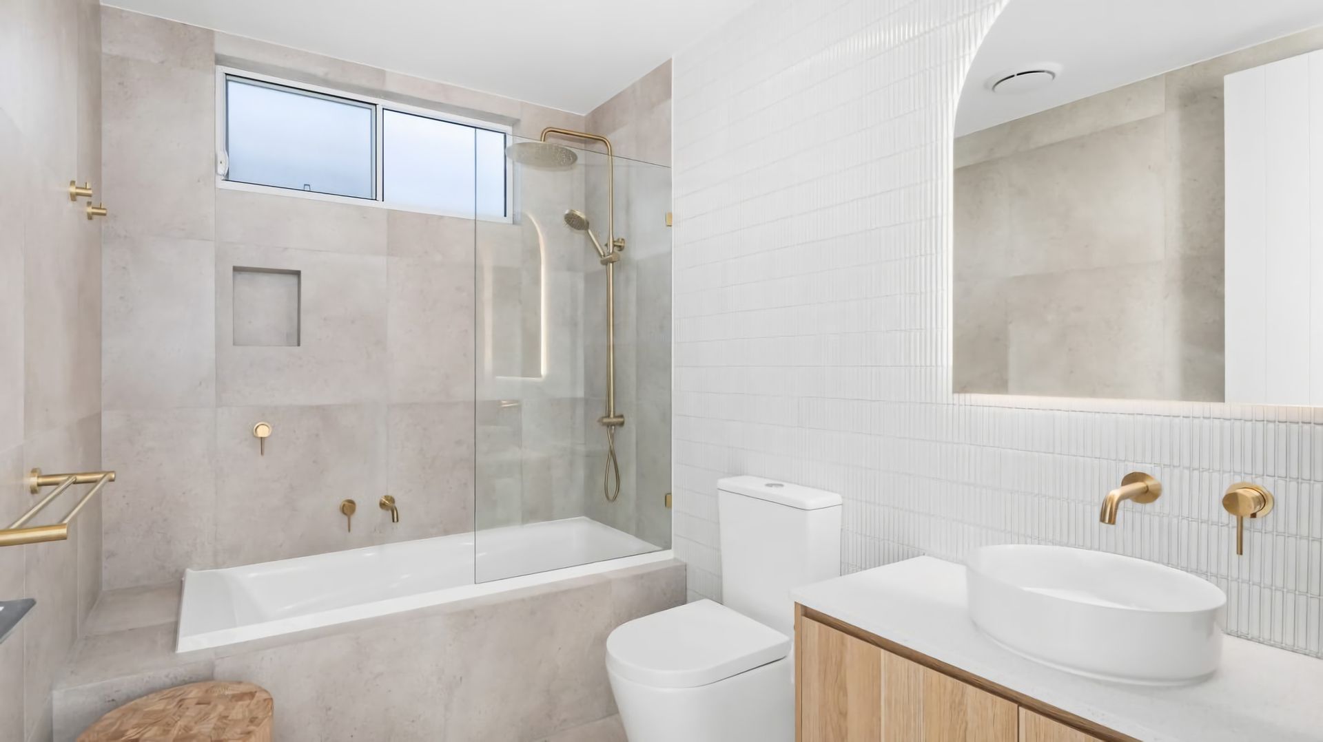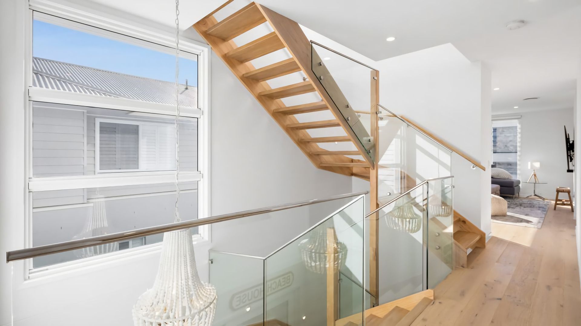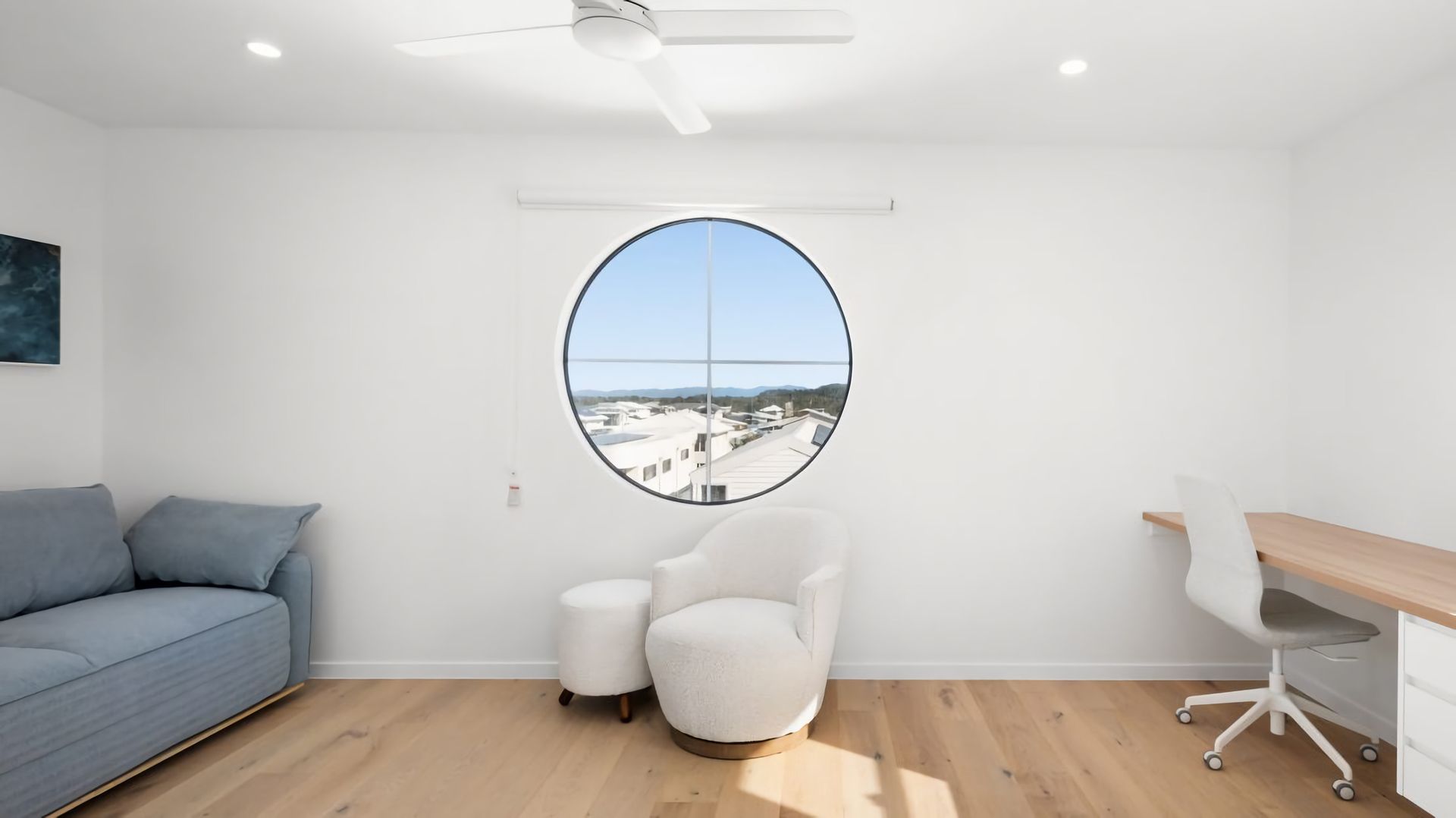 Level 3 - Another living zone awaits on this thoughtfully designed top floor. Also referred to as the “parents’ retreat”. The multipurpose room has a designated desk and work space while the sofa folds out into a queen bed (This queen fold-out sofa can allow the property to sleep 14 guests on request). The kitchenette (with fridge) also offers the ability to have a relaxing coffee or tea without needing to head down to the ground floor. Indulge in the sophistication of the master suite with a generous balcony (with some ocean glimpses), stylish walk-in robe and an ensuite with a divine freestanding bath, separate shower and double basin. The master bedroom also features a 65” smart TV.