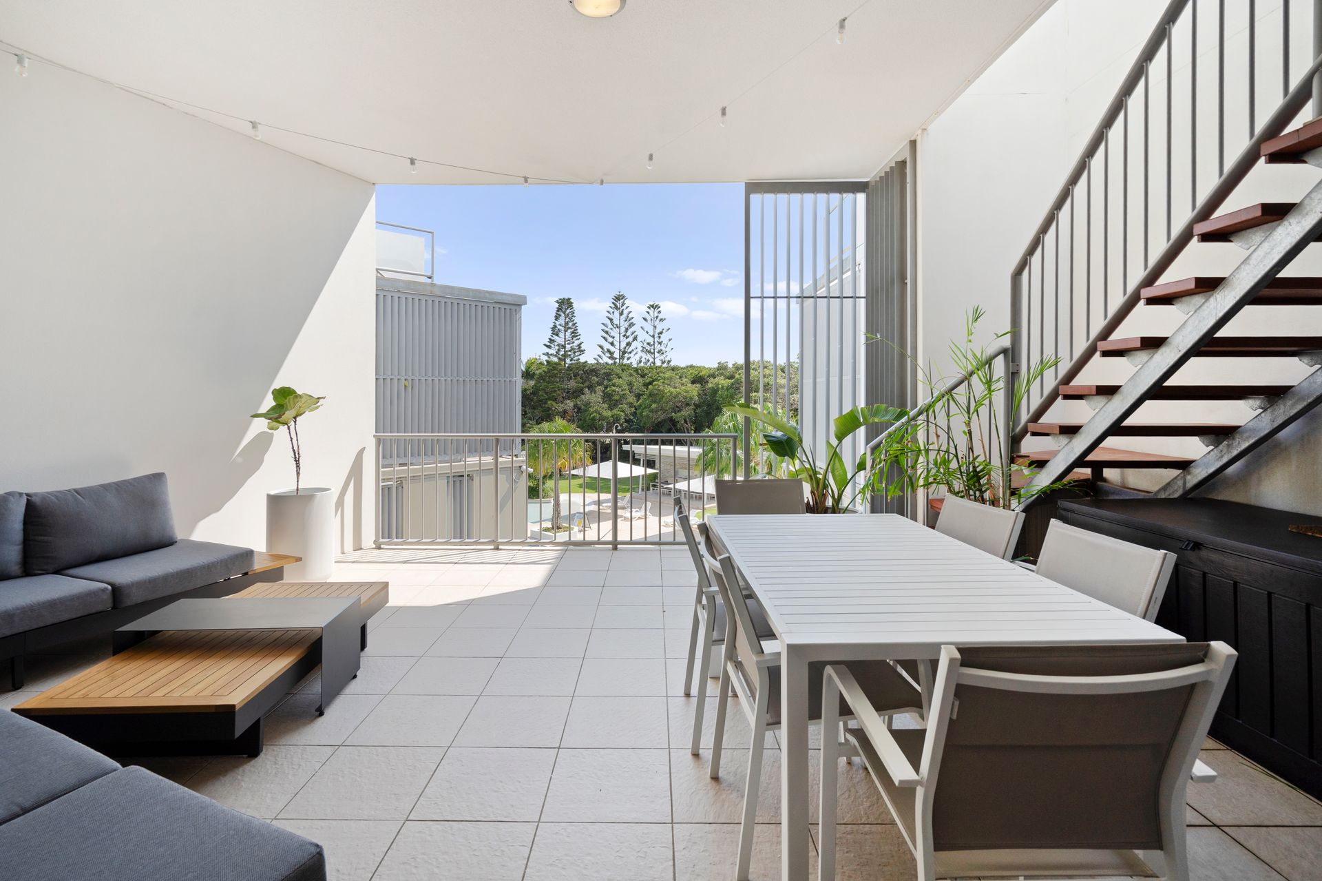 The heart of the home is a gourmet kitchen with stone bench tops perfect for entertaining, slide open the doors to your north-facing balcony overlooking the sparkling lagoon pool, or head upstairs to your private rooftop terrace for sunset drinks with panoramic views across Casuarina and the hinterland.
