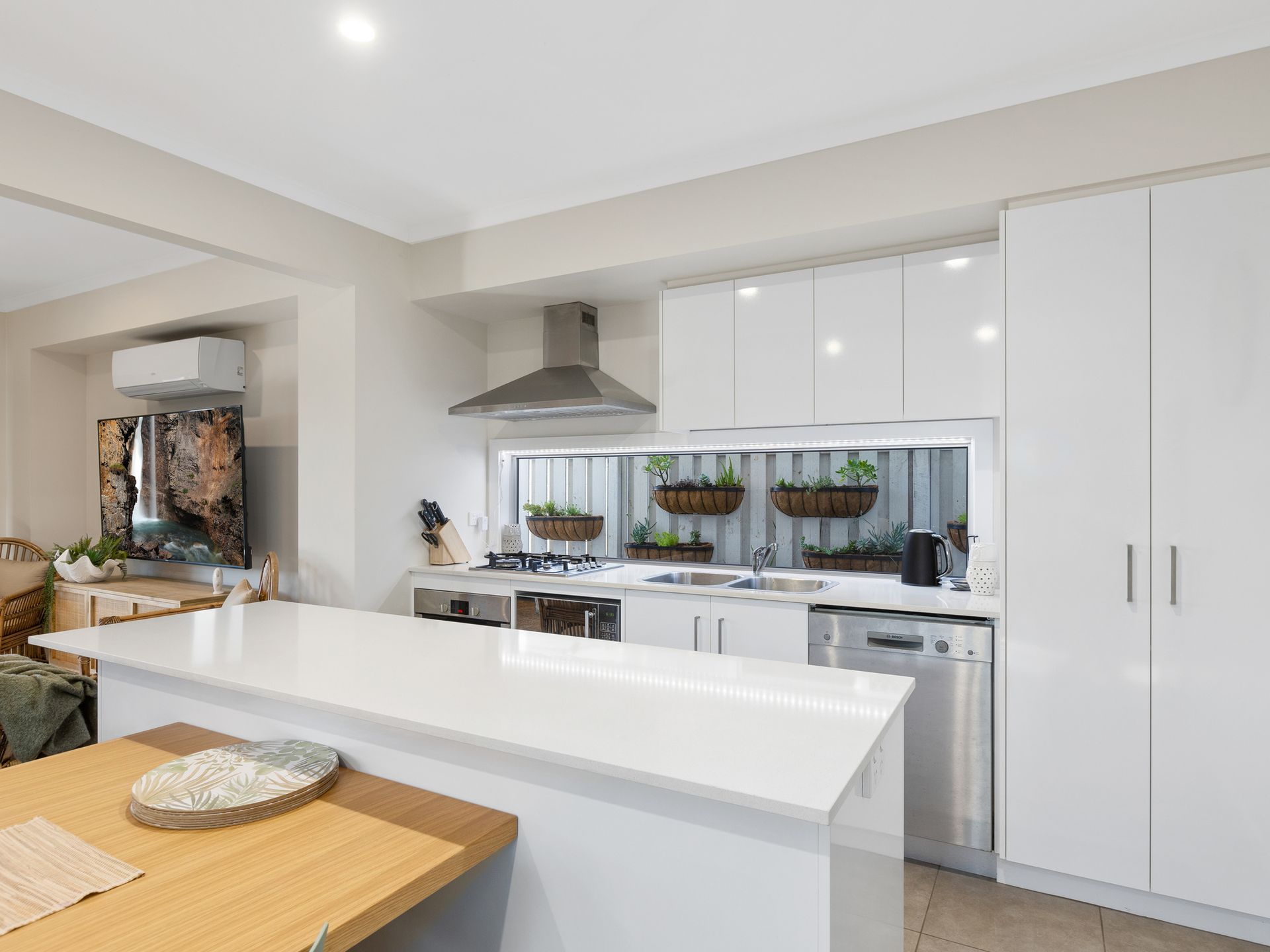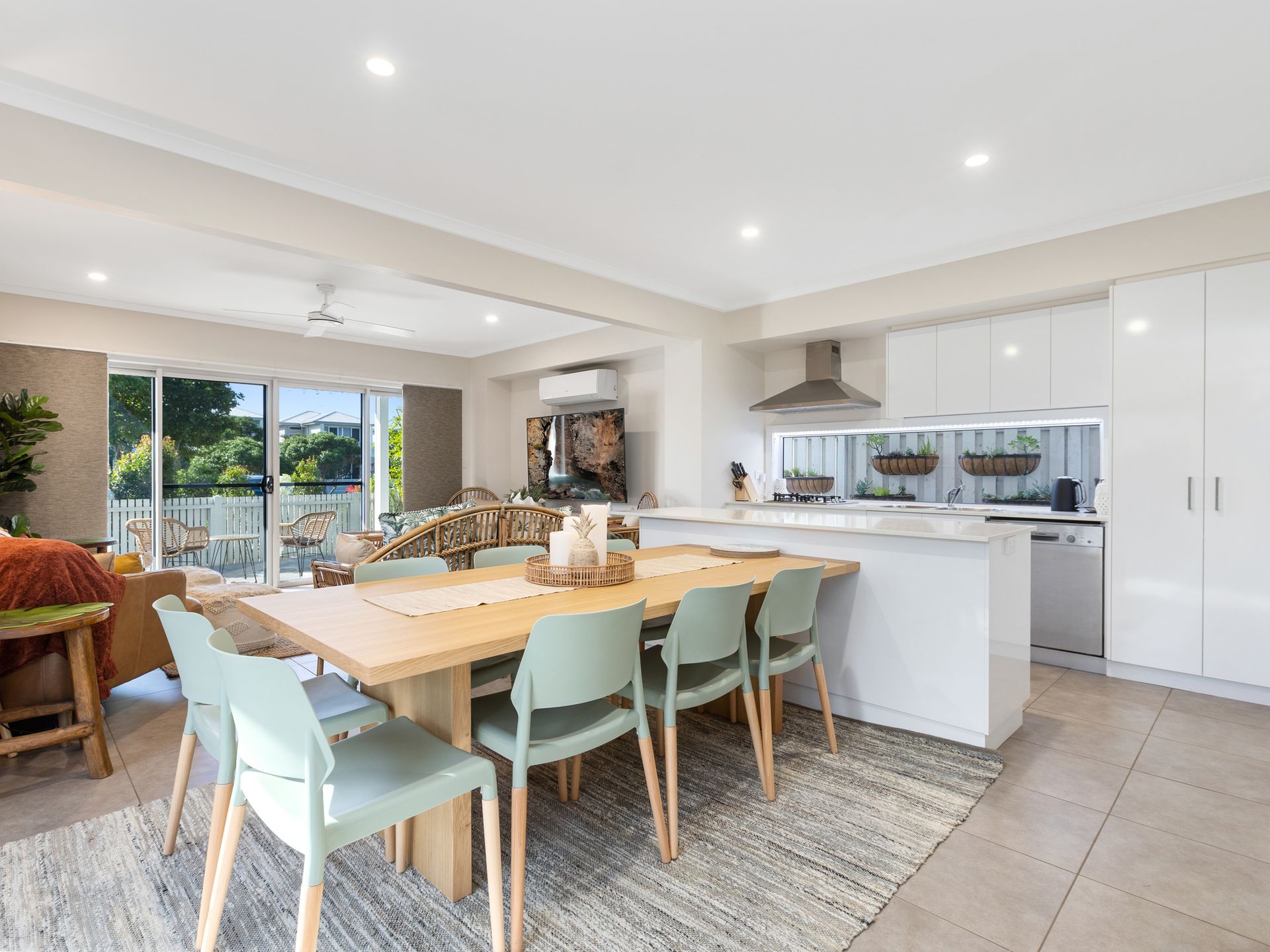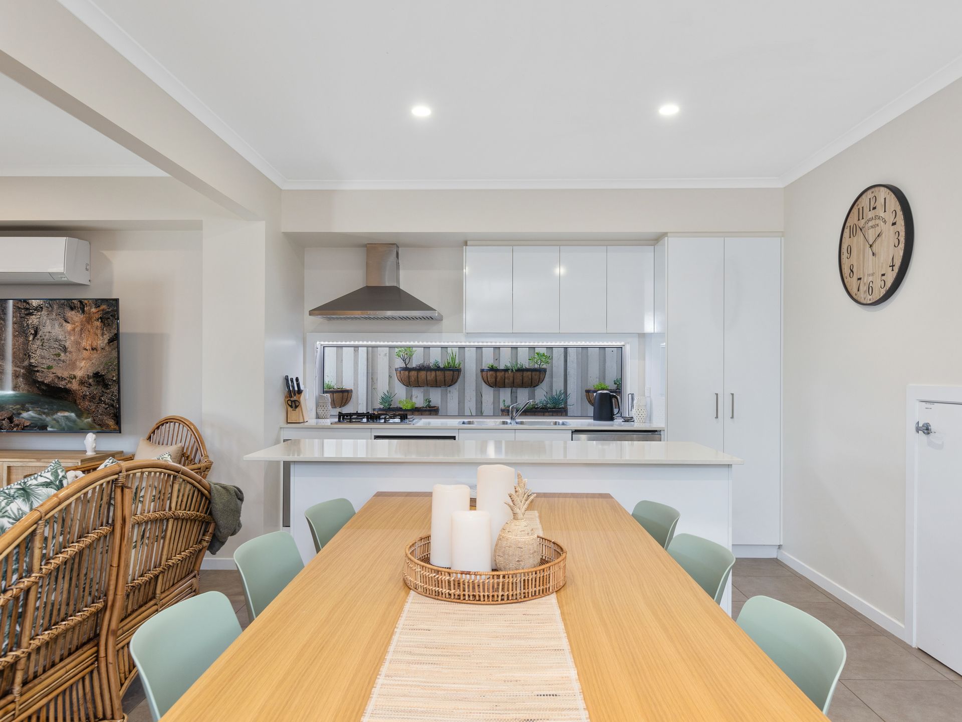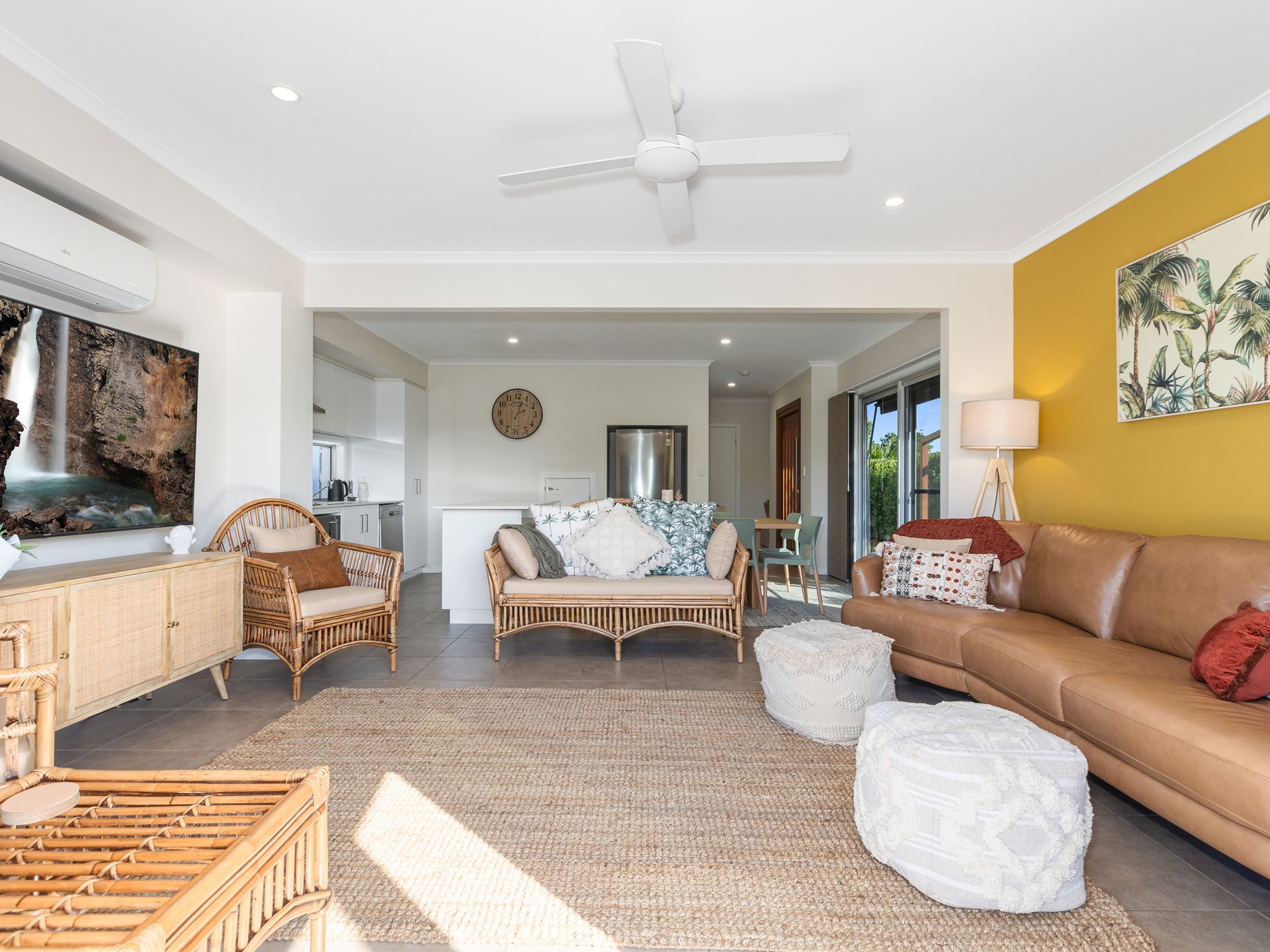 The immaculate open plan living area features a lounge suite, smart TV, 8 seater dining table, 8 air conditioning and ceiling fan. The spacious living and dining area flows seamlessly onto your large private alfresco area. Enjoy outdoor living with family and friends.