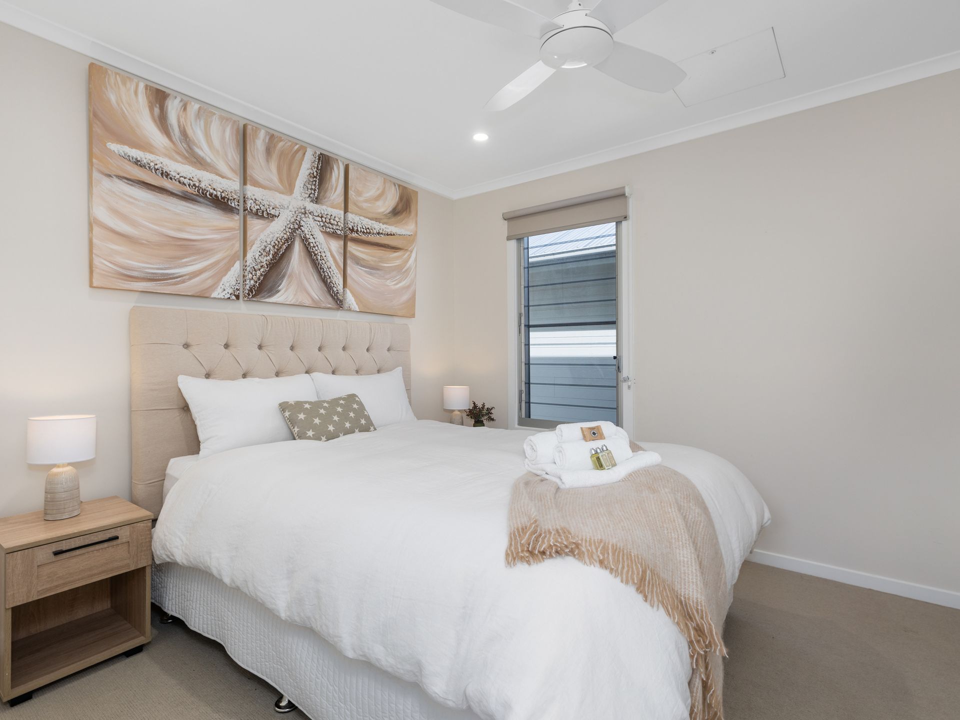 Bedroom 2 features a queen size bed, ceiling fan, air con and built in robe.